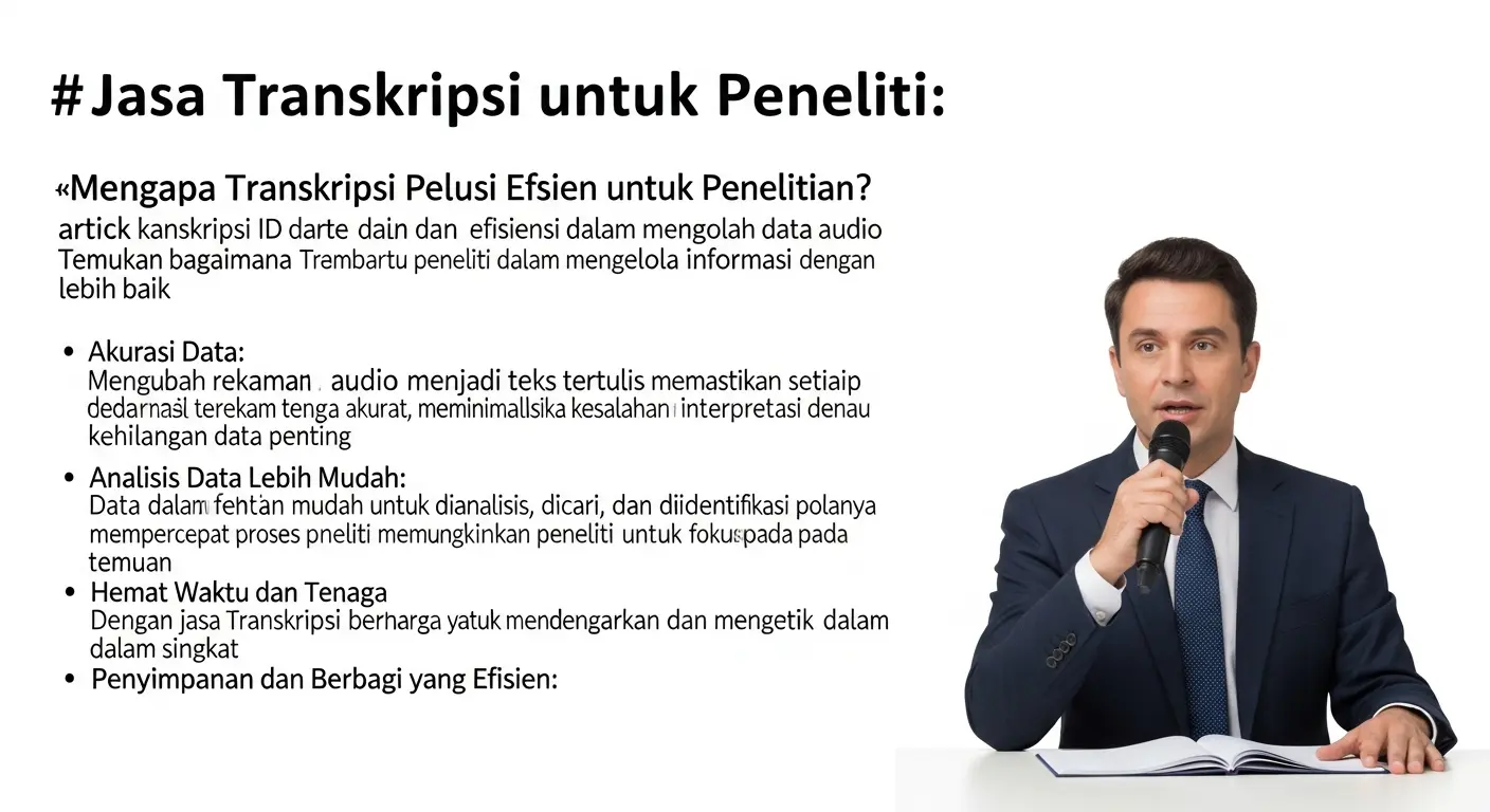 Artikel ini membahas pentingnya jasa transkripsi untuk peneliti, dengan fokus pada kemudahan dan efisiensi dalam mengolah data audio. Temukan bagaimana Transkripsi ID dapat membantu peneliti dalam mengelola informasi dengan lebih baik.