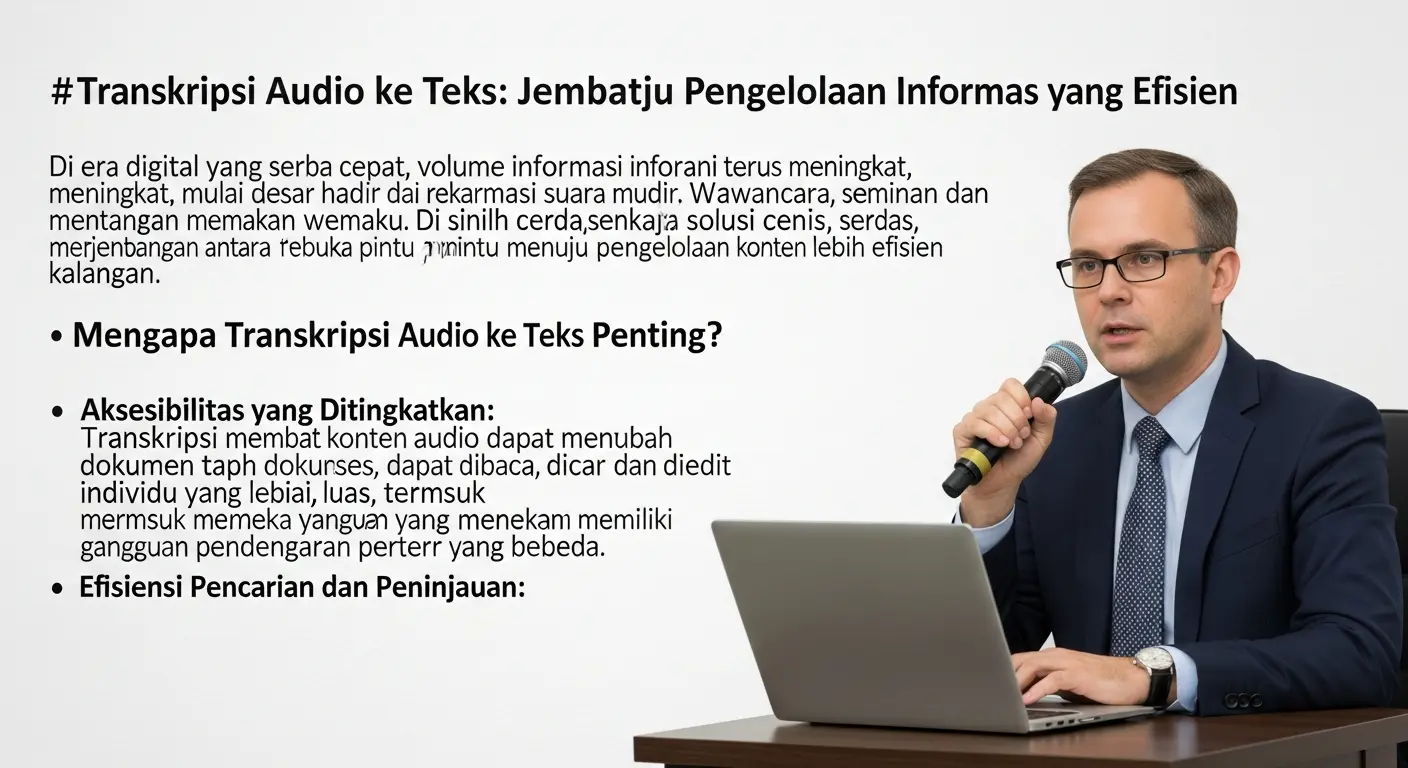 Artikel tentang layanan transkripsi audio ke teks yang menghadirkan solusi dalam pengelolaan informasi audio untuk berbagai kalangan.